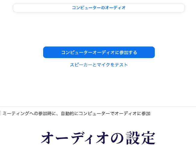 利用環境によってパソコンの音声機器を使用するか聞かれるので、「コンピューターでオーディオに参加」ボタンをクリックします。